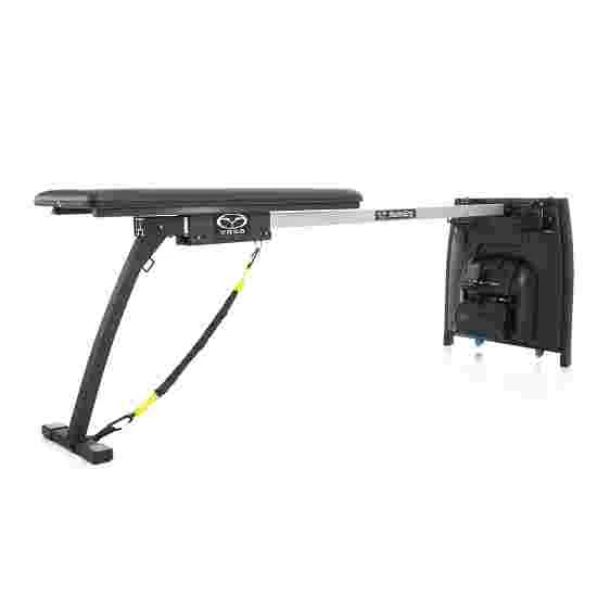 The Vasa swim bench is the perfect fitness product for realistic swim stroke simulation. Whether you’re monitoring time, distance, speed, stroke rate, watts or stroke output: thanks to the electronic display, you can retrieve your performance data at any time. This will also enable your coach to keep an eye on training progress and if necessary, intervene at an early stage to correct problems. The Vasa ergometer creates resistance using an eddy brake. The resistance level can be adjusted using the airflow flywheel and can be set to a host of different training levels ranging from rehabilitation and leisure sport to competitive swimming. A rope pull with paddles allows unrestricted movement sequences for different swimming techniques. Includes electronic display, paddles, handles and stretch cords.