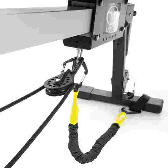The deluxe model. With the Vasa Trainer Roller Bench ‘Pro’ you train using your own bodyweight and an adjustable angle of the roller rail. Additional rubber brakes reduce the centrifugal force of the sliding bench in the end phase of the movement. Stacking weights are optional and can be bought separately. ‘Power-Cordz’ can also be added to increase the training intensity. Stainless steel roller rail with height adjusting mechanism, epoxy-coated steel frame, padded sliding bench and deluxe cable system. Robust design for use in clubs. For indoor use and dry outdoor facilities.